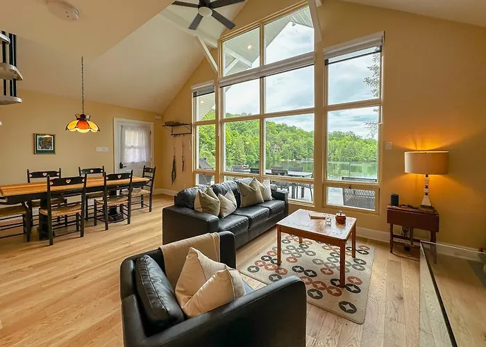 Le Mimosa 32 Nights Min Exitchalets Lake villa is fitted with a fully furnished kitchen that comes with an oven and a dishwasher. Travellers can easily reach Montreal-Mirabel International airport, which is 55 km from the Morin Heights accommodation.